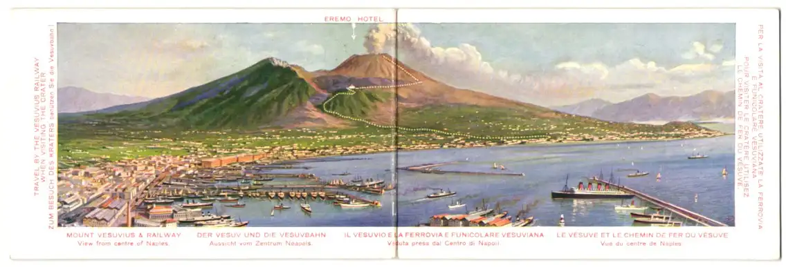 Künstler-Klapp-AK Naples, Mount Vesuvius and Railway, View from City Centre