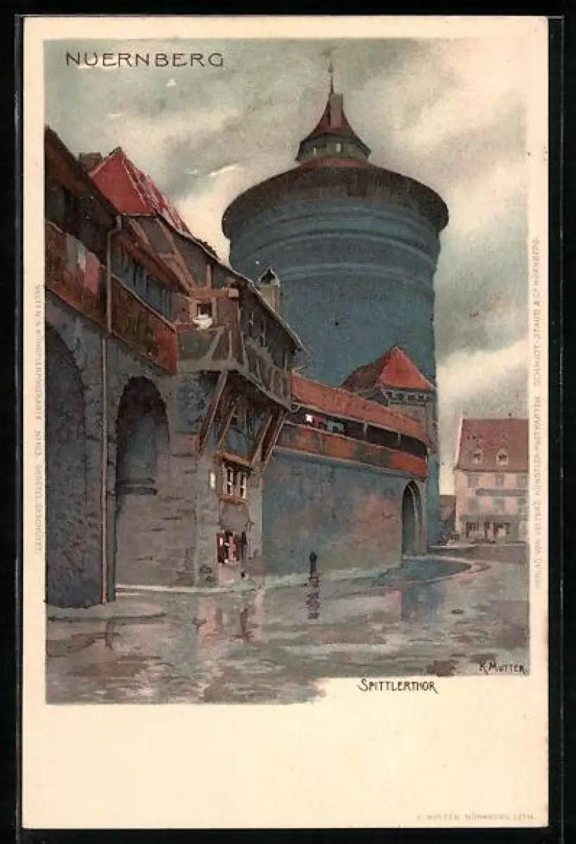 Künstler-Lithographie Karl Mutter: Nürnberg, Spittlertor