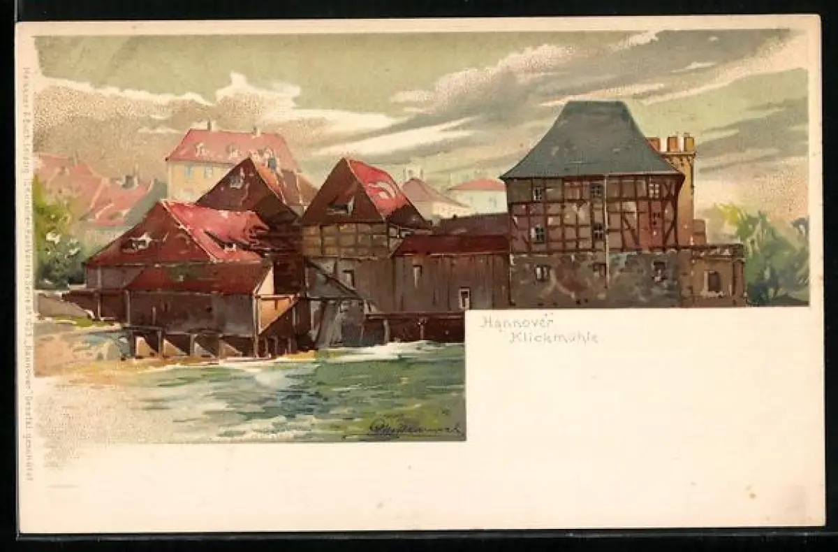 Künstler-Lithographie Otto Hammel: Hannover, Blick zur Klickmühle