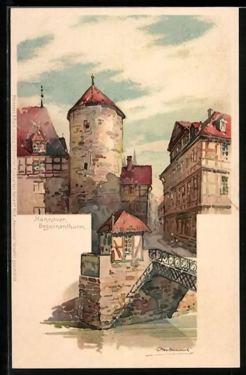 Künstler-Lithographie Otto Hammel: Hannover, Partie am Beguinenturm
