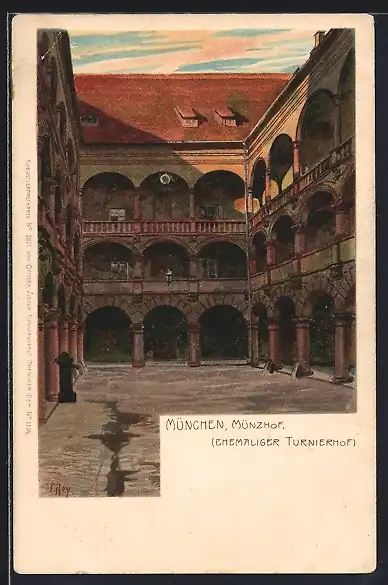 Künstler-Lithographie Paul Hey: München, Münzhof, ehem. Turnierhof