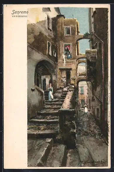 Künstler-Lithographie R. Guidorizzi: Sanremo, Via Riccobono