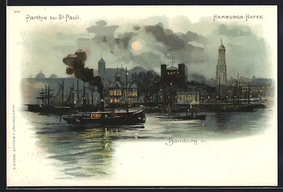 Künstler-Lithographie sign. A. Heide: Hamburg-St.Pauli, Partie bei St. Pauli, Hafen