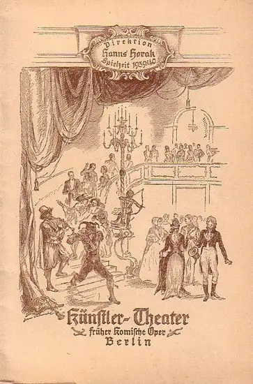 8°. Originalheft. 20 Seiten mit Porträtfotos der Darsteller, des Autors, einigen Szenenfotos, Texten von und über Coubier etc. sowie 2 Blatt Besetzungszettel. Die Klammern sind leicht angerostet. Beiliegend: Verhalten bei Fliegeralarm (1 Blatt). Gut erhalten