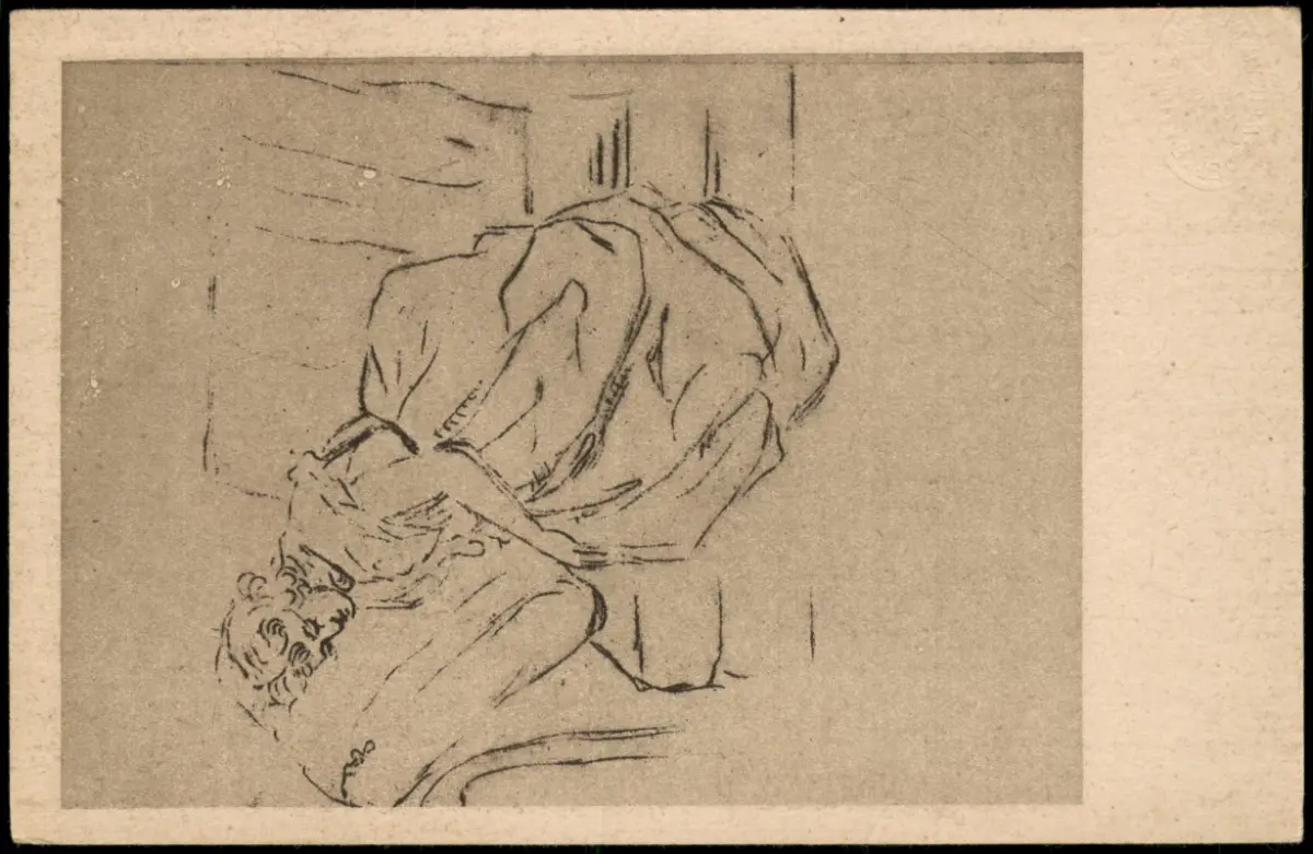 Künstlerkarte Christiane Vulpius schlafend Zeichnung von Goethe 1910