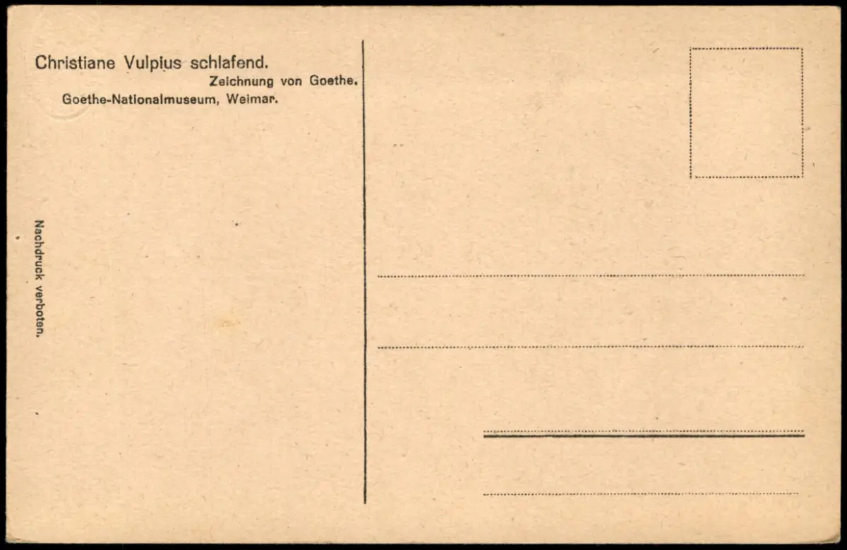 Name: Künstlerkarte Christiane Vulpius schlafend Zeichnung von Goethe