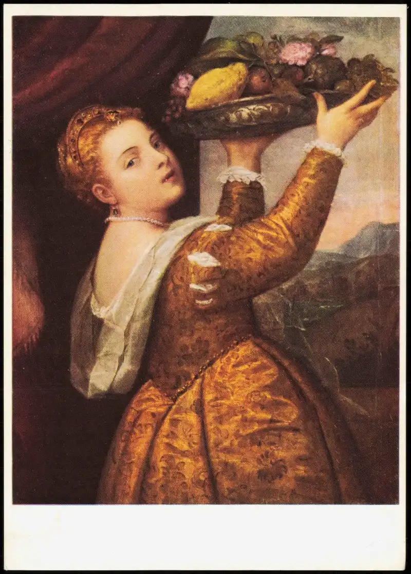 Künstlerkarte TIZIAN Mädchen Fruchtschale Tochter Lavinia MUSEUM DAHLEM 1980