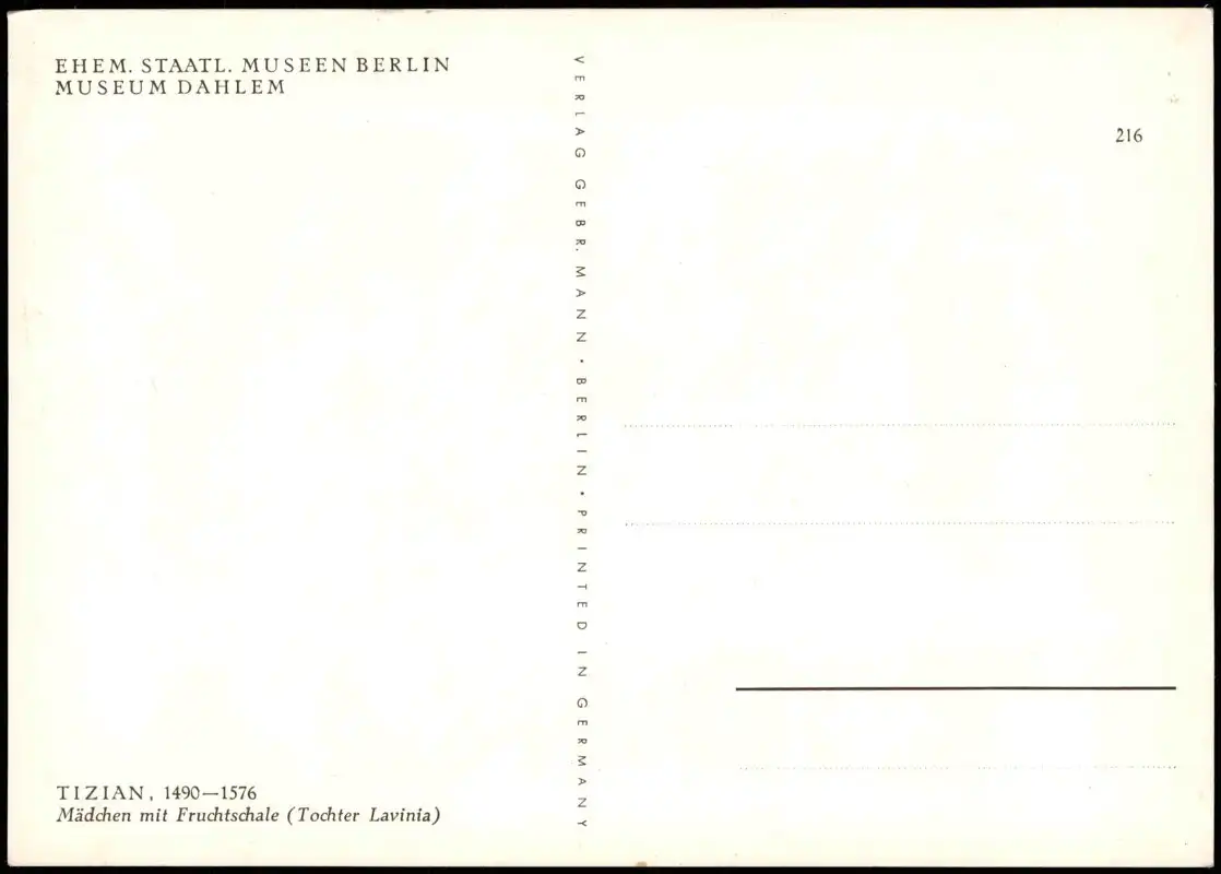 Name: Künstlerkarte TIZIAN Mädchen mit Fruchtschale (Tochter Lavinia) MUSEUM DAHLEM