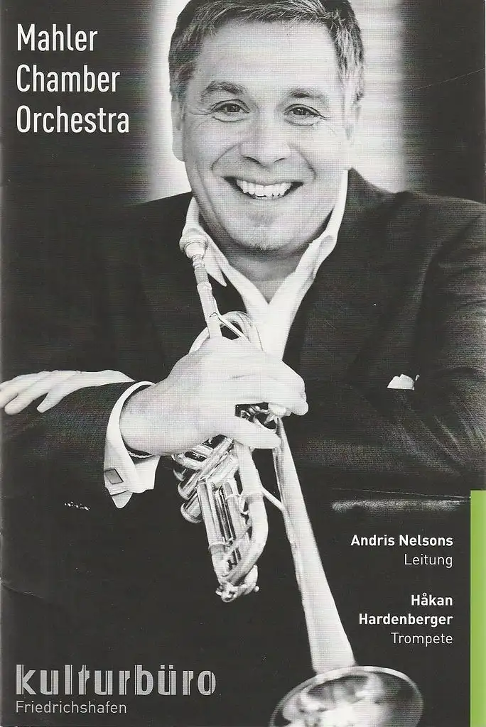 Solist: Hakan Hardenberger, Trompete. Mahler Chamber Orchestra. Leitung: Andris Nelsons. Programm: LUDWIG VAN BEETHOVEN: Egmont-Ouvertüre f-Moll op. 84. Sinfonie Nr. 7 A-Dur op. 92. JOSEPH HAYDN: Konzert für Trompete und Orchester Es-Dur, Hob. Vlle:1. HK GRUBER: Busking for trumpet, accordion, banjo and string orchestra. - Theaterprogramm, Opernprogramm, Ballettprogramm, Musicalprogramm, Konzertprogramm, Theatermemorabilia, Programmhefte Sammlung, deutsche Theatergeschichte.