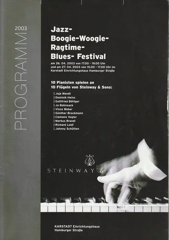 Kunst-Kultur-Karstadt-Team, Karstadt Einrichtungshaus Hamburger Straße: Programmheft Jazz- Boogie-Woogie- Ragtime- Blues-Festival 26. / 27. April 2003.