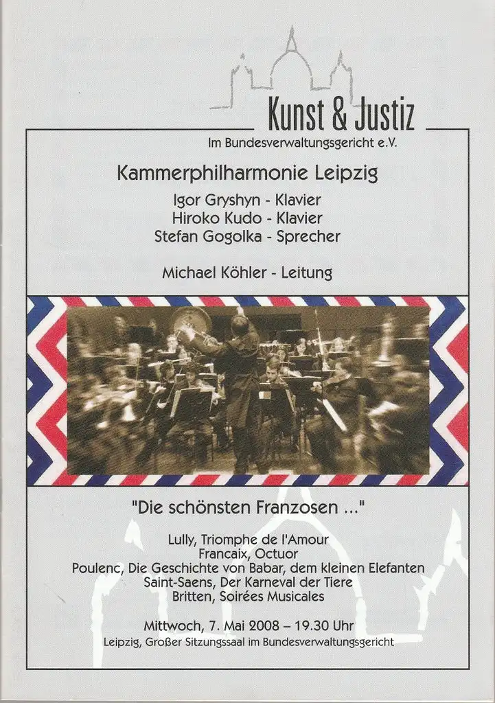 Titel: Programmheft KAMMERPHILHARMONIE LEIPZIG DIE SCHÖNSTEN FRANZOSEN 7. Mai 2008 Großer Sitzungssaal im Bundesverwaltungsgericht