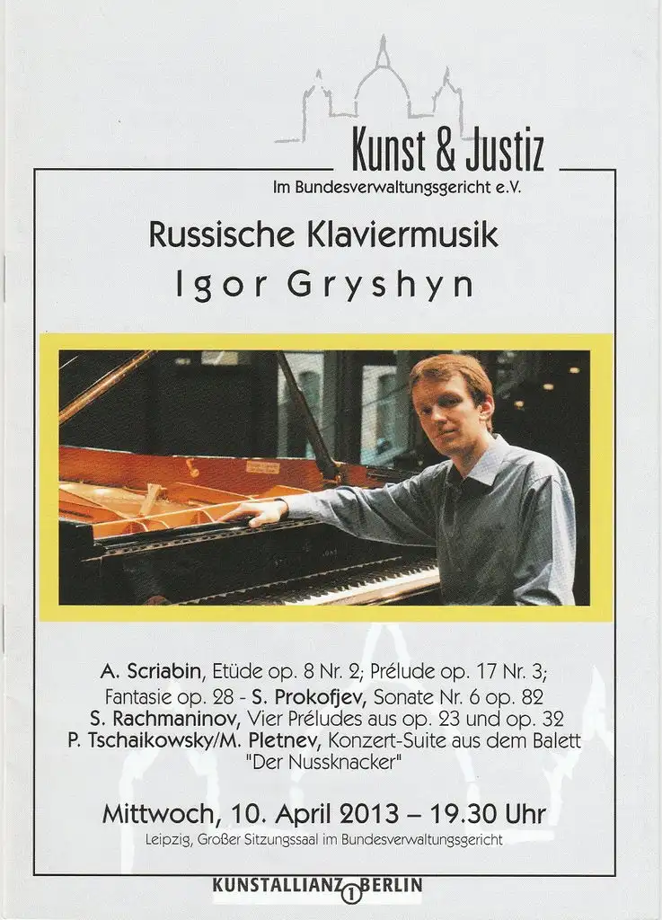 Titel: Programmheft RUSSISCHE KLAVIERMUSIK IGOR GRYSHYN 10. April 2013 Großer Sitzungssaal im Bundesverwaltungsgericht