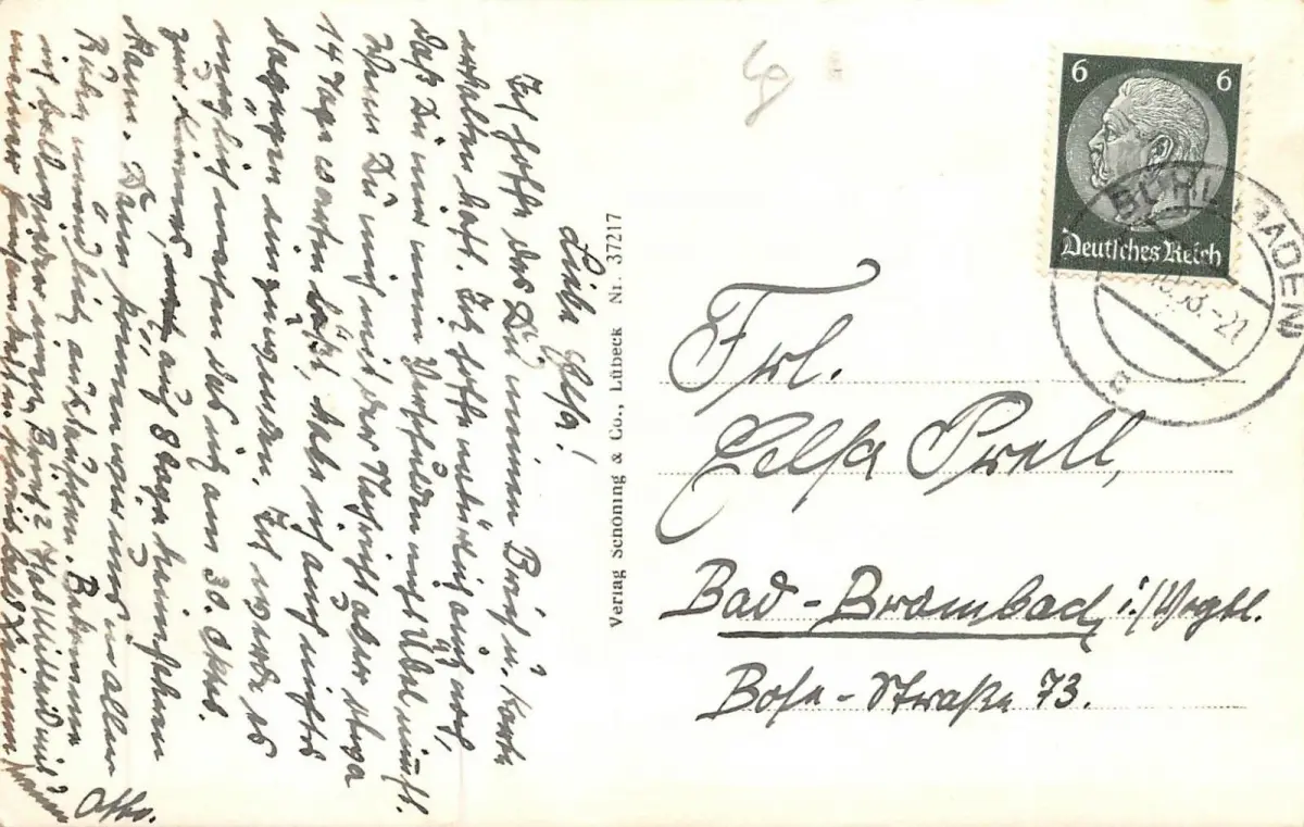 Rückseite: gelaufen 1933 von Buhl (Baden)