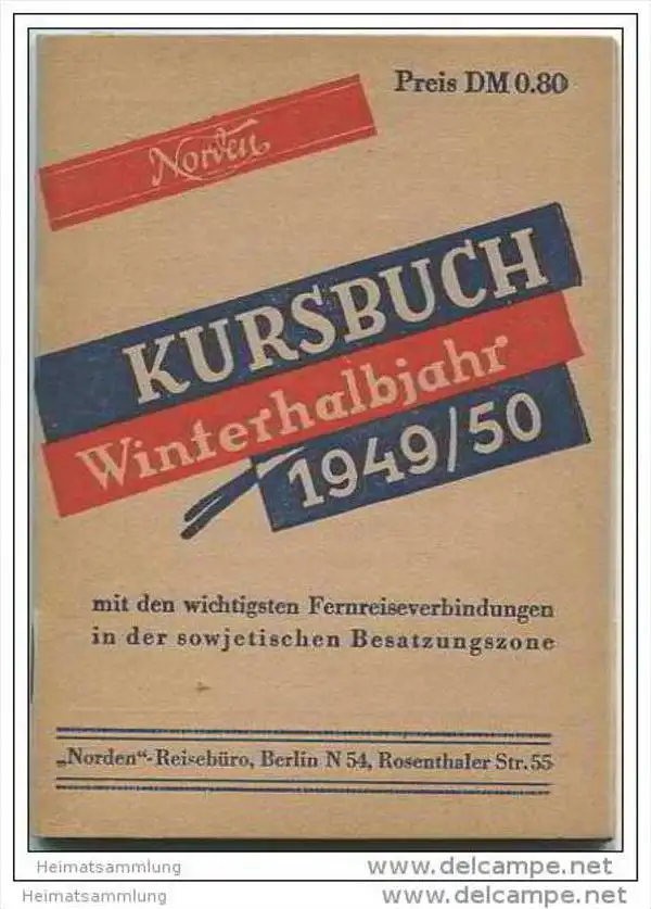 Kursbuch - Winterhalbjahr 1949/50 mit den wichtigsten Fernreiseverbindungen in der sowjetischen Besatzungszone mit Interzonen-Verkehr - Herausgeber: ' Norden' Reisebüro - 64 Seiten - Postkartengrösse (G22907)