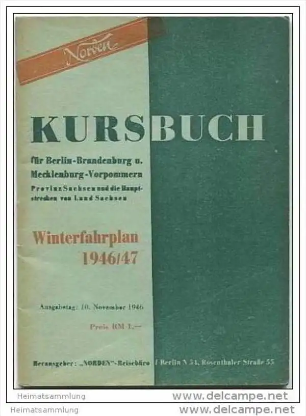 Kursbuch - für Berlin-Brandenburg Mecklenburg-Vorpommern Provinz und Land Sachsen - Winterfahrplan 1946/47