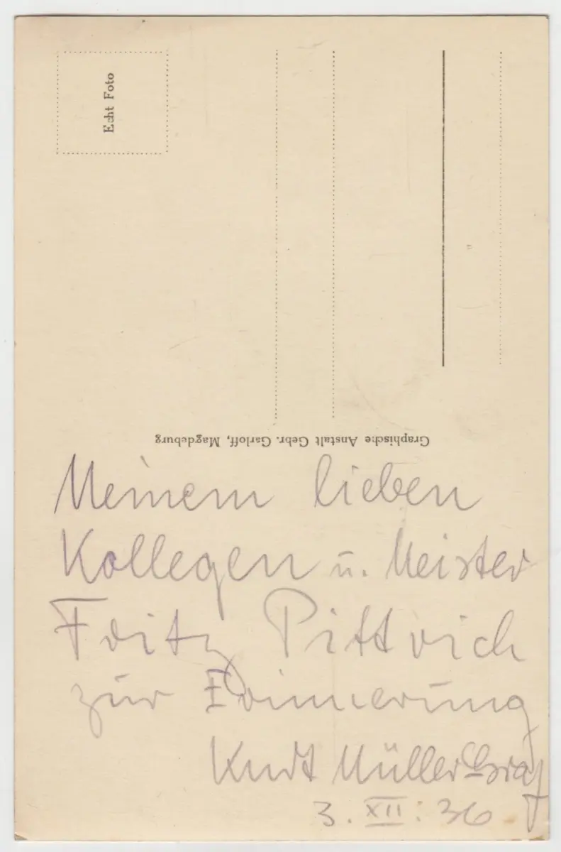 Bemerkungen: Zustand: Widmung an Fritz Pittrich auf der Rückseite, sonst sehr gut erhalten // Deutscher Schauspieler und Festspielintendant (1913-2013).