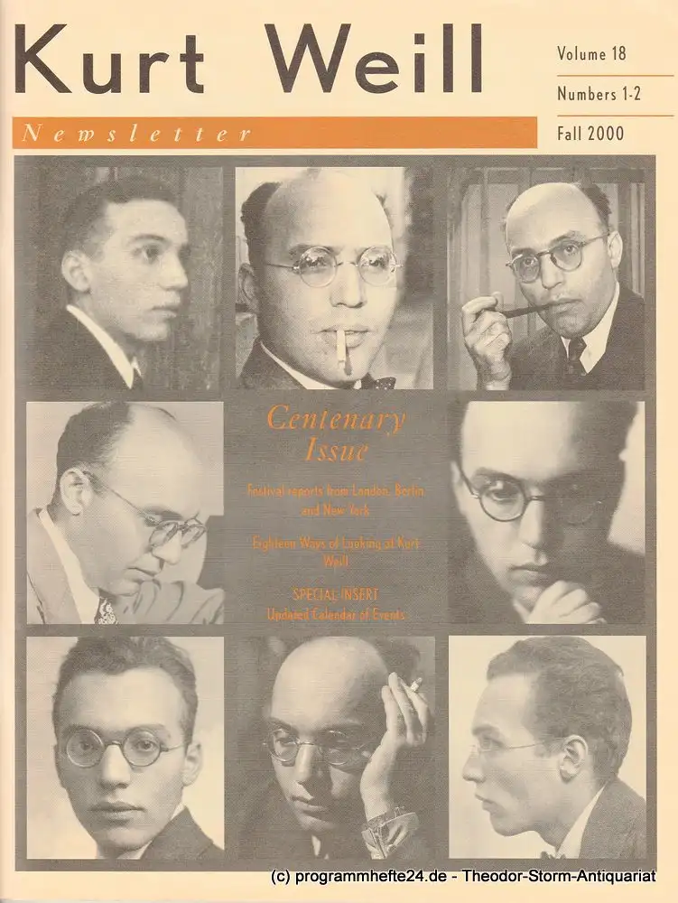 Centenary Issue. Festival reports from London, Berlin and New York / Eighteen Ways of Looking at Kurt Weill / Special Insert. Updated Calendar of Events - Theaterprogramm, Opernprogramm, Ballettprogramm, Musicalprogramm, Konzertprogramm, Theatermemorabilia, Programmhefte Sammlung, deutsche Theatergeschichte.