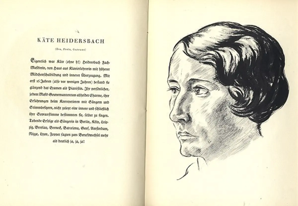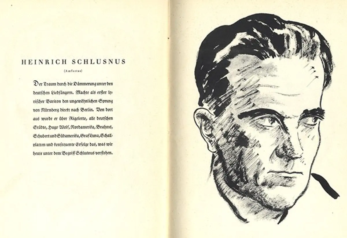 Kunst Grafik Mappe mit Kordelbindung von 1933 gesamt 26 Seiten mit einem Vorwort und kurzer Einführung Zeichnung des Festspielhauses und Porträts von Interpreten und Persönlichkeiten der Wagner Festspiele mit kurzer Darstellung ihrer Aufgaben und Tätigkeiten
