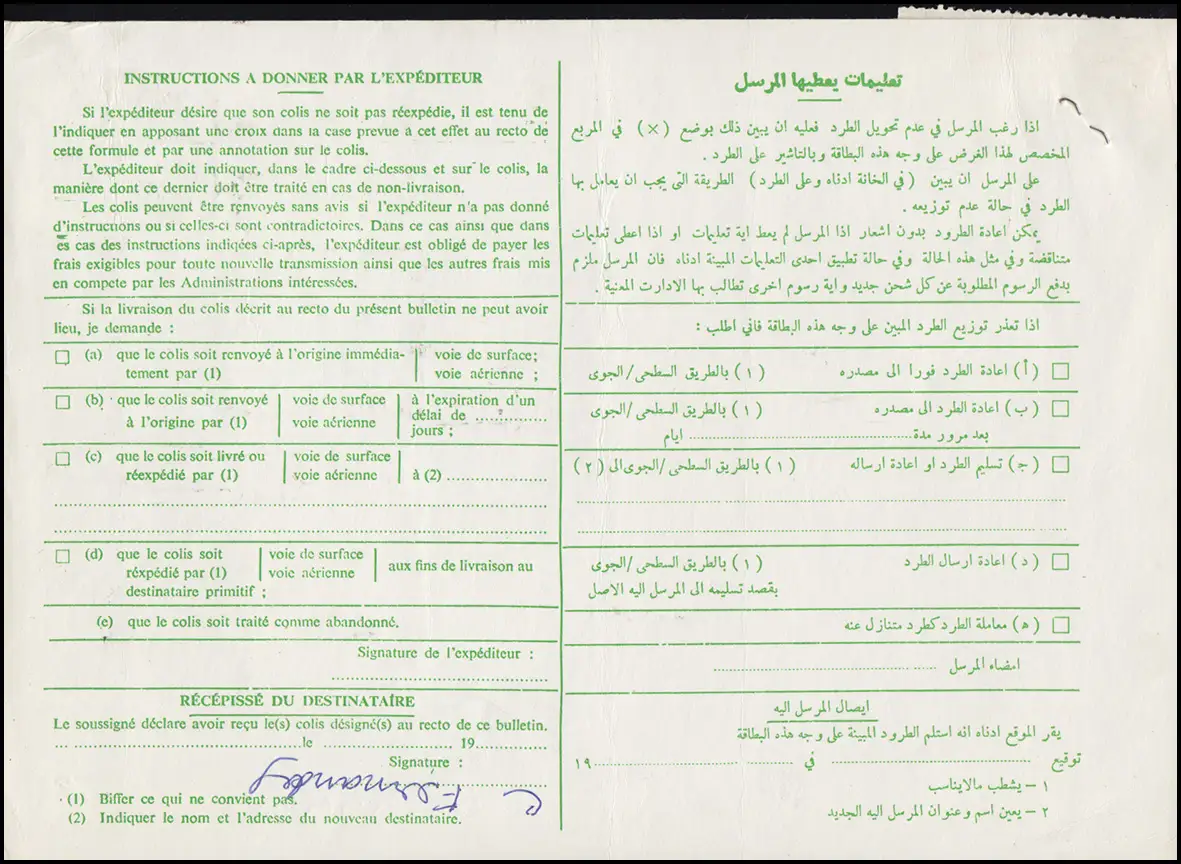 Kastenstempel PARCEL POST / DAHIYAT ABDULLA ALSALIM / 7.10.86 sowie SURFACE MAIL