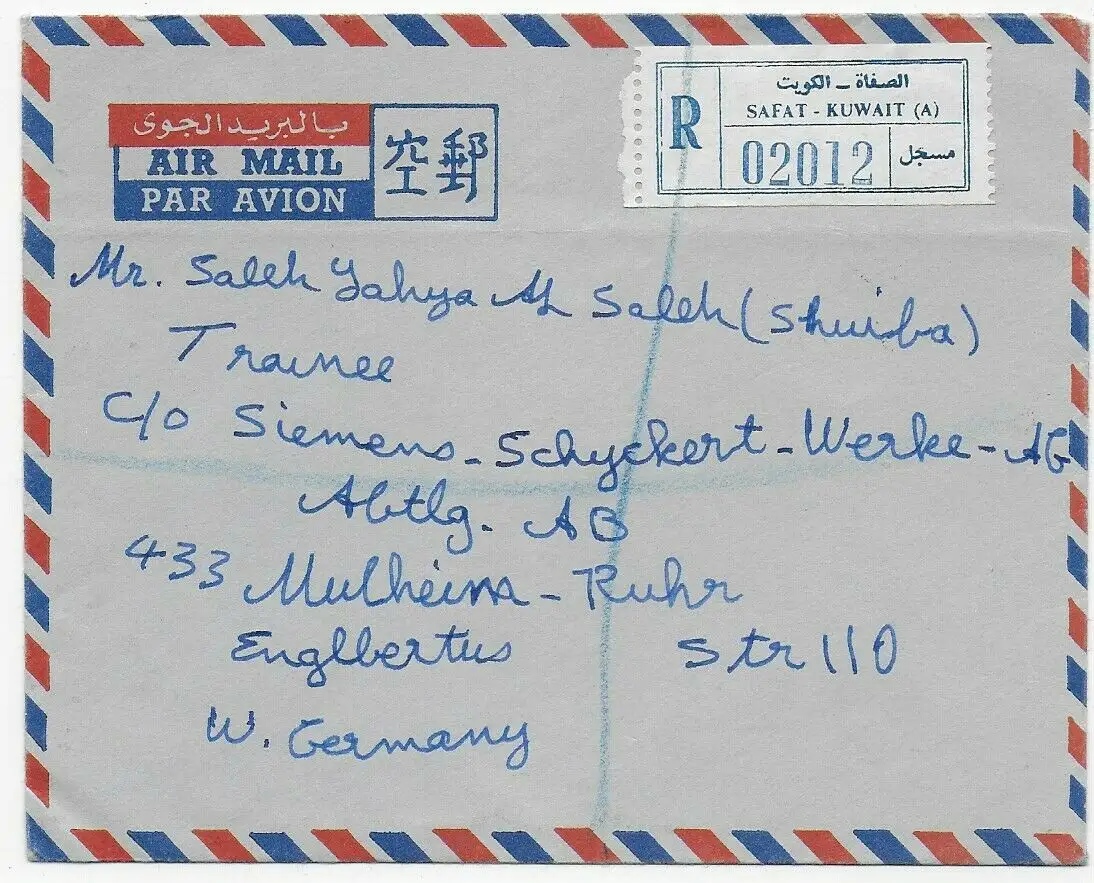 Kuweit: Einschreiben Luftpost von Safat nach Mülheim-Ruhr 1964