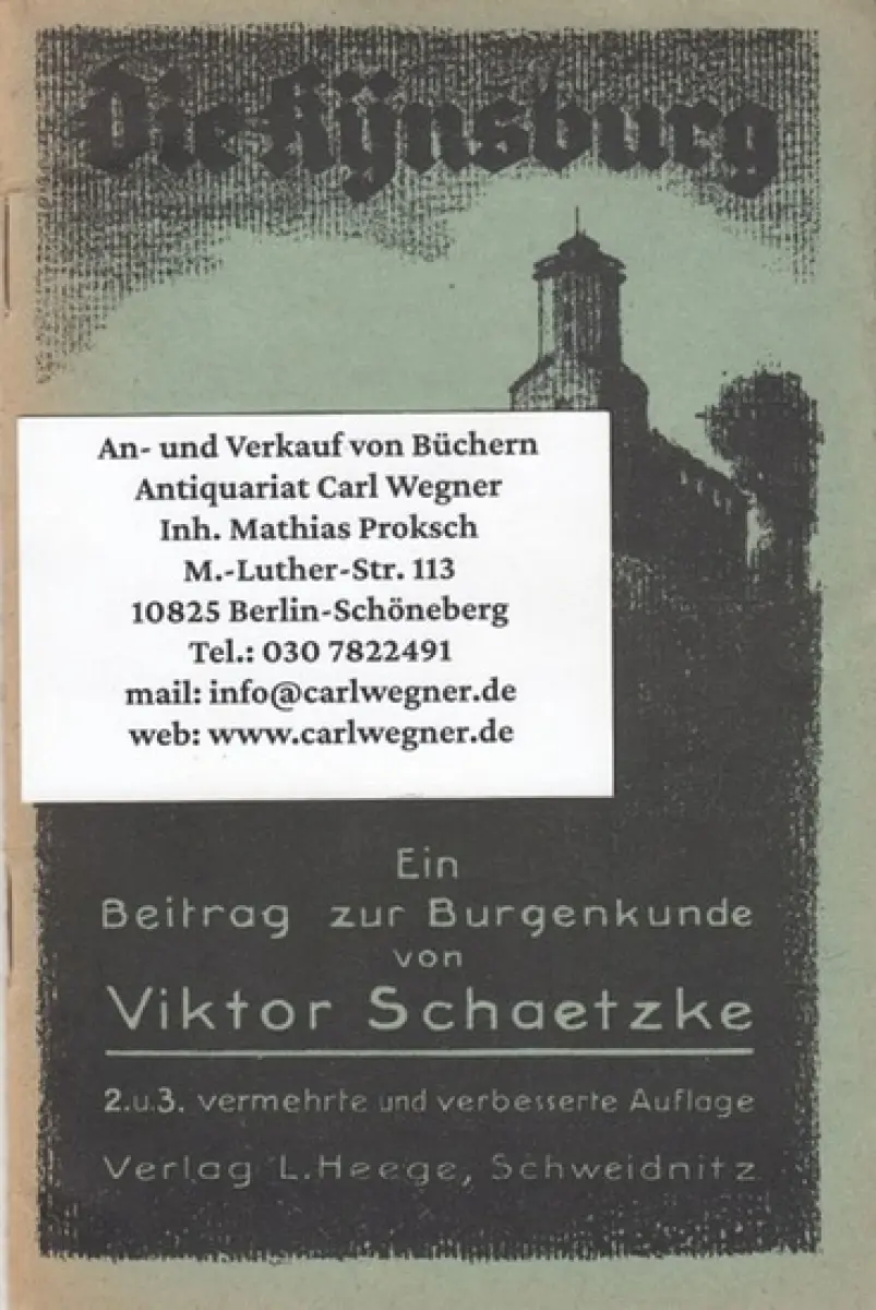 Kynsburg. - Viktor Schaetzke: Die Kynsburg. Ein Beitrag zur Burgenkunde. - Sonderdruck aus: Schlesische Burgen und Schlösser (Iser-, Riesen- und Waldenburgergebirge und Vorberge.