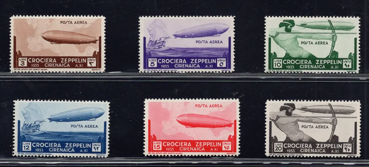 MNH - Vollgummi - Kyrenaika - Luftpost Kreuzfahrt Zeppelin Nr. 12/17 komplette Serie neuer perfekter Vollgummi, gut zentriert - Kat. euro 300 Cod. 3096/WEB