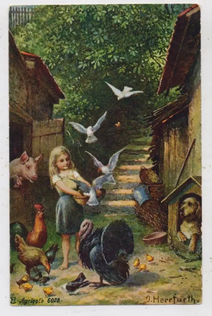 LANDWIRTSCHAFT - VIEHFÜTTERUNG; kÜNSTLER-kARTE oTTO hERFURTH