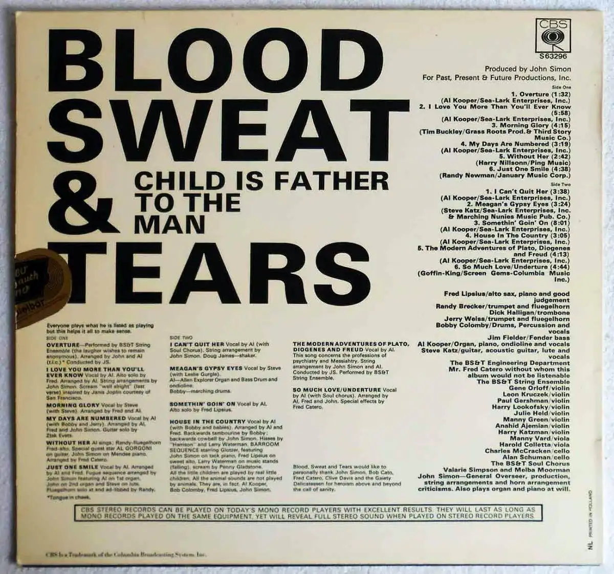 LP Blood Sweat & Tears: Child Is Father To The Man (CBS S 63296) NL 1968