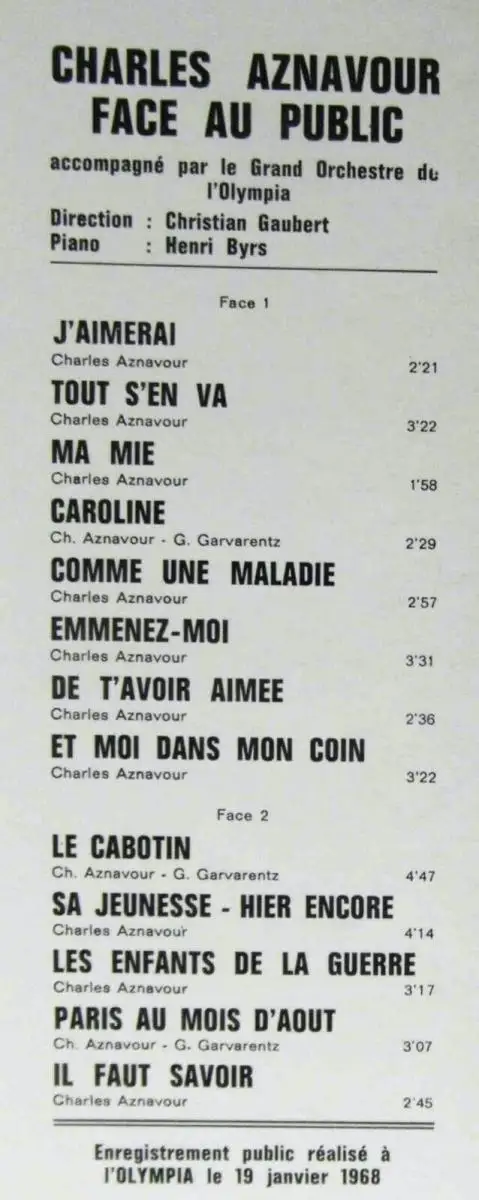 LP Charles Aznavour: Face Au Public... (Barclay 80 361) F