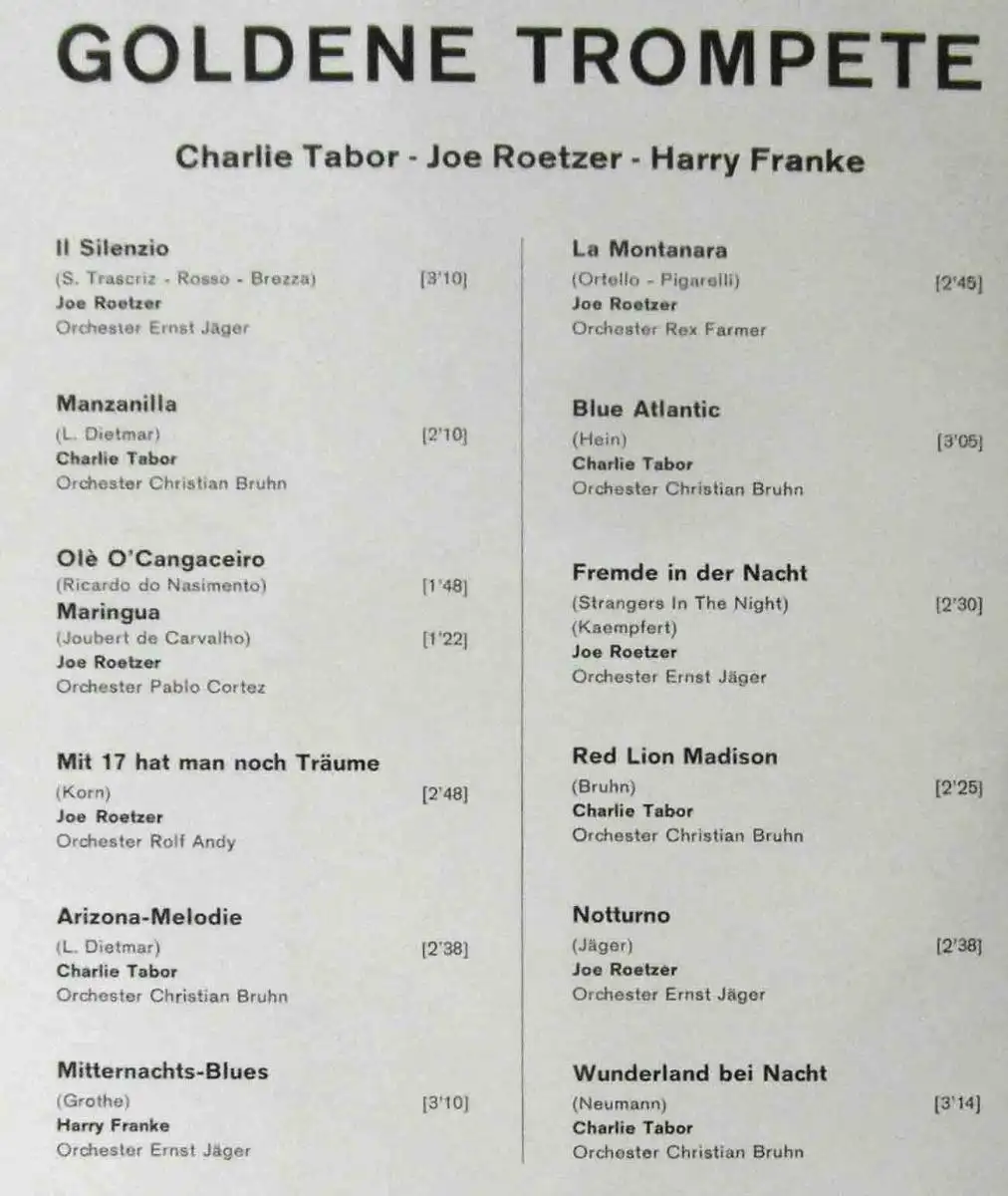 LP Charlie Tabor Joe Roetzer Harry Franke: Goldene Trompete (Tempo 7040) D 1965