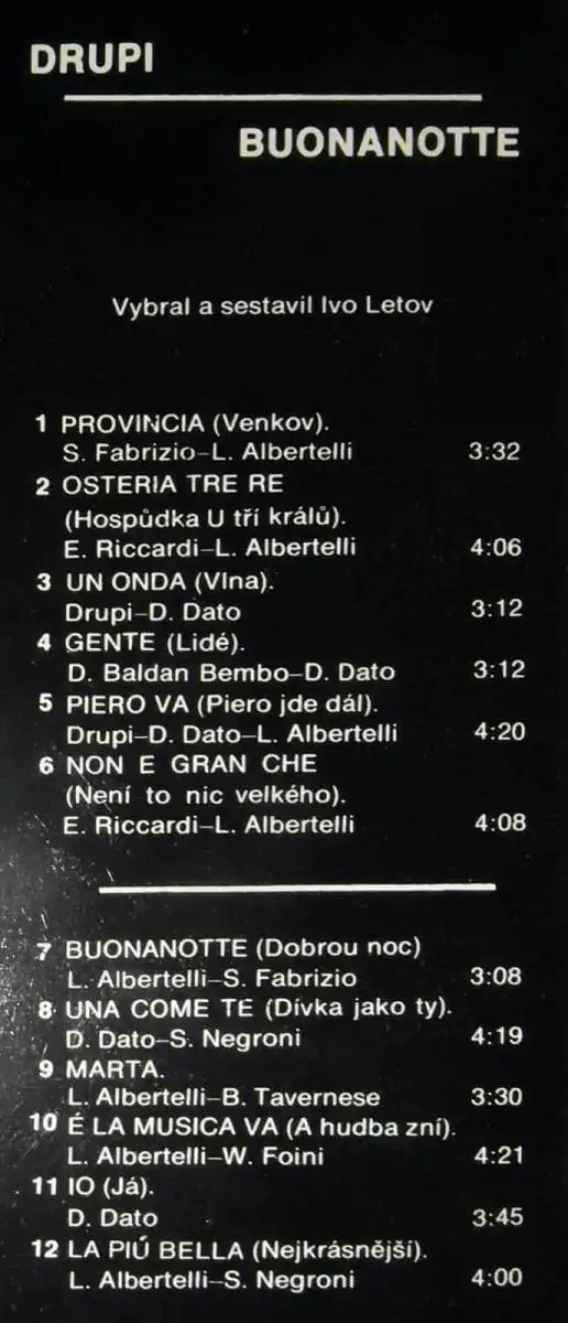 LP Drupi: Buonanotte (Supraphon 1113 2999 ZN) CSSR 1980