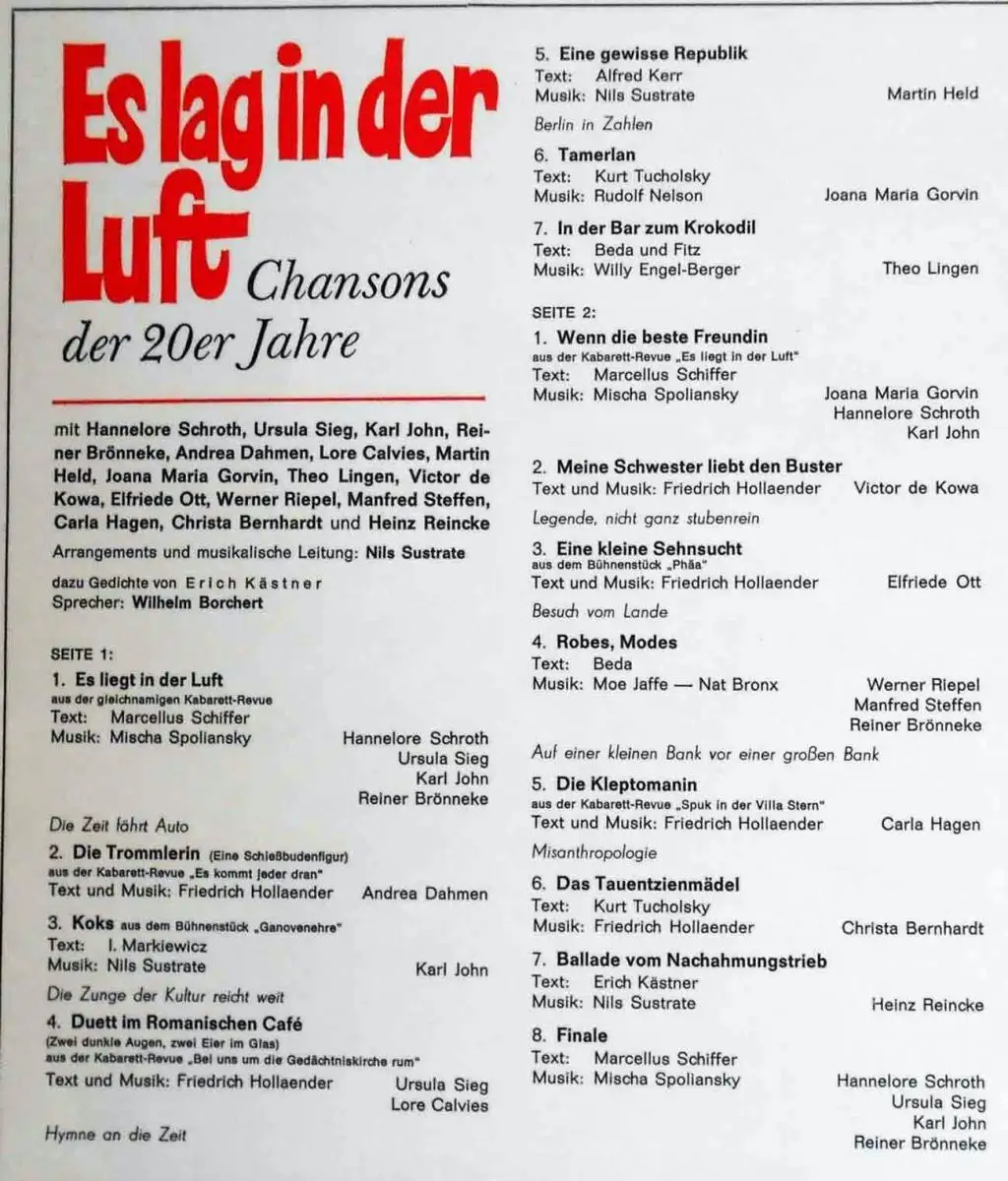 LP Es lag in der Luft - Chansons der 20er Jahre - Schall & Rauch Serie Decca