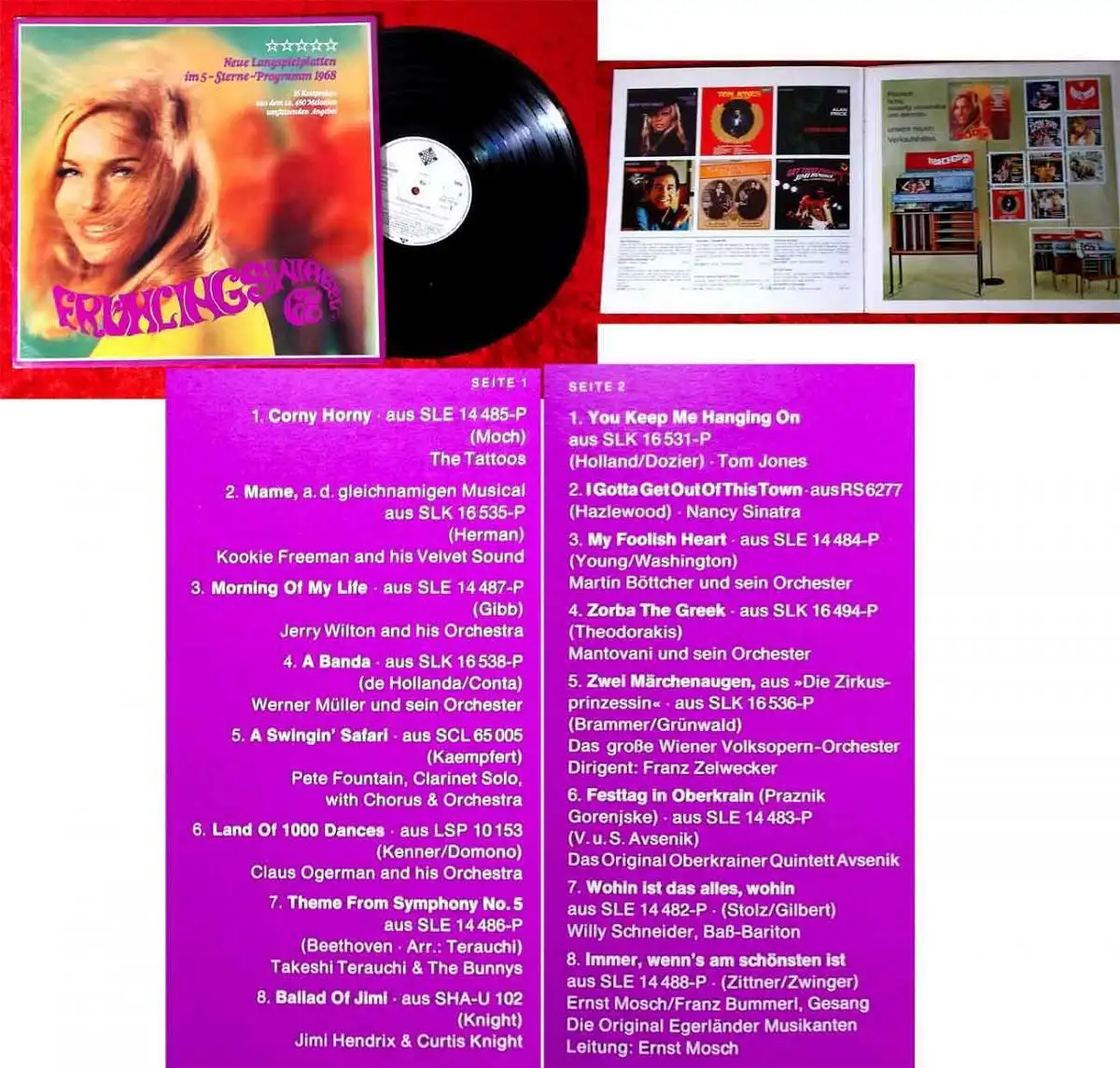 Originalalbum, Teldec Records, Werbe LP, Promo, Weissmuster, foc, woc, mit Nancy Sinatra, Jimi Hendrix & Curtis Knight, Takeshi Terauchi & The Bunnys, Claus Ogerman, Pete Fountain, Tom Jones, Mantovani, Martin Böttcher, Original Oberkrainer Quintett Avsenik, Ernst Mosch & Franz Bummerl & Original Egerländer Musikanten, Werner Müller, Jerry Wilton, Kookie Freeman & His Velvet Sound, Tattoos
