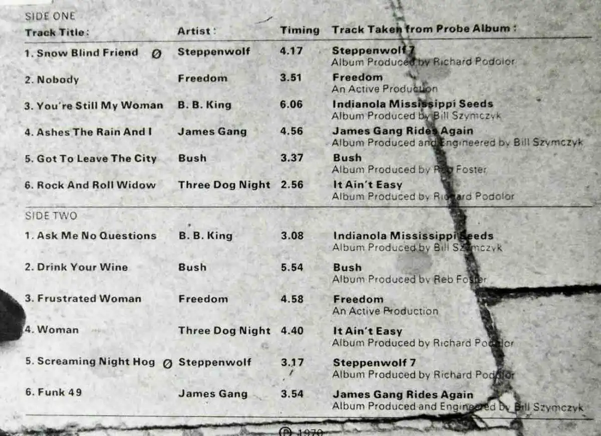 Probe Records, dt. Pressung, um 1970, feat Steppenwolf, James Gang, Freedom, B.B. King, Bush, Three Dog Night