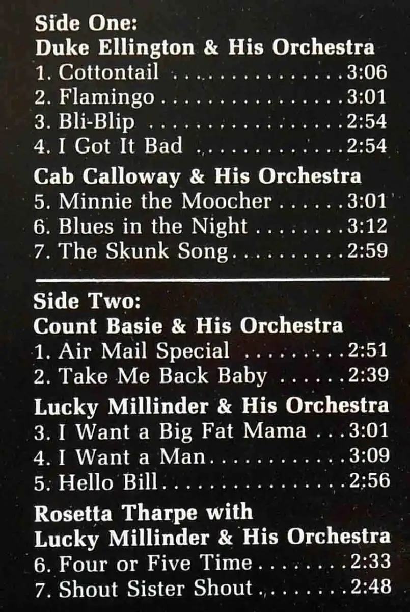 feat Duke Ellington, Count Basie, Lucky Millinder, Cab Calloway, Sister Rosetta Tharpe