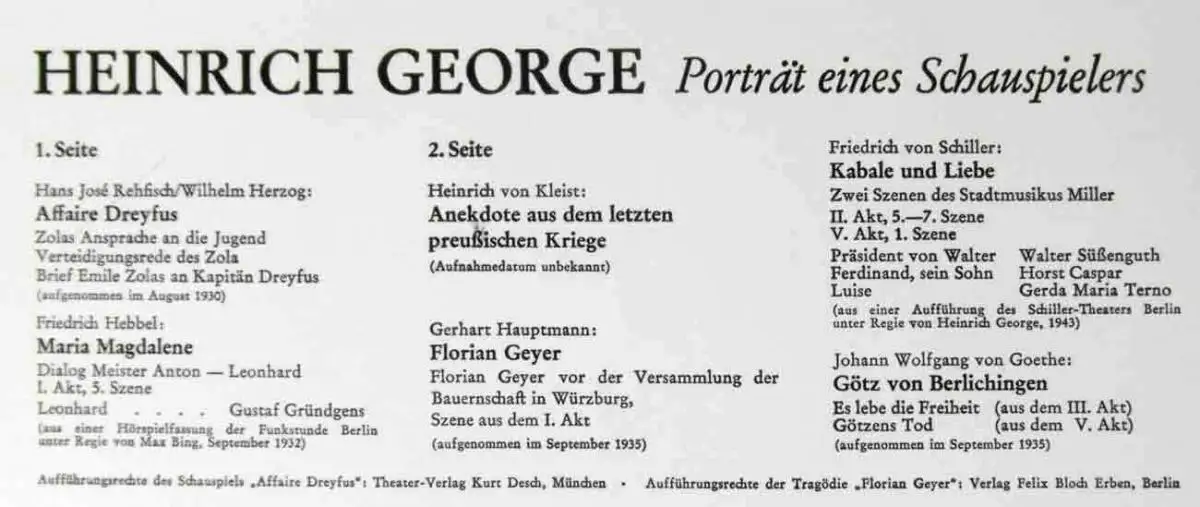 LP Heinrich George: Porträt eines Schauspielers (Telefunken 641003 AS) D
