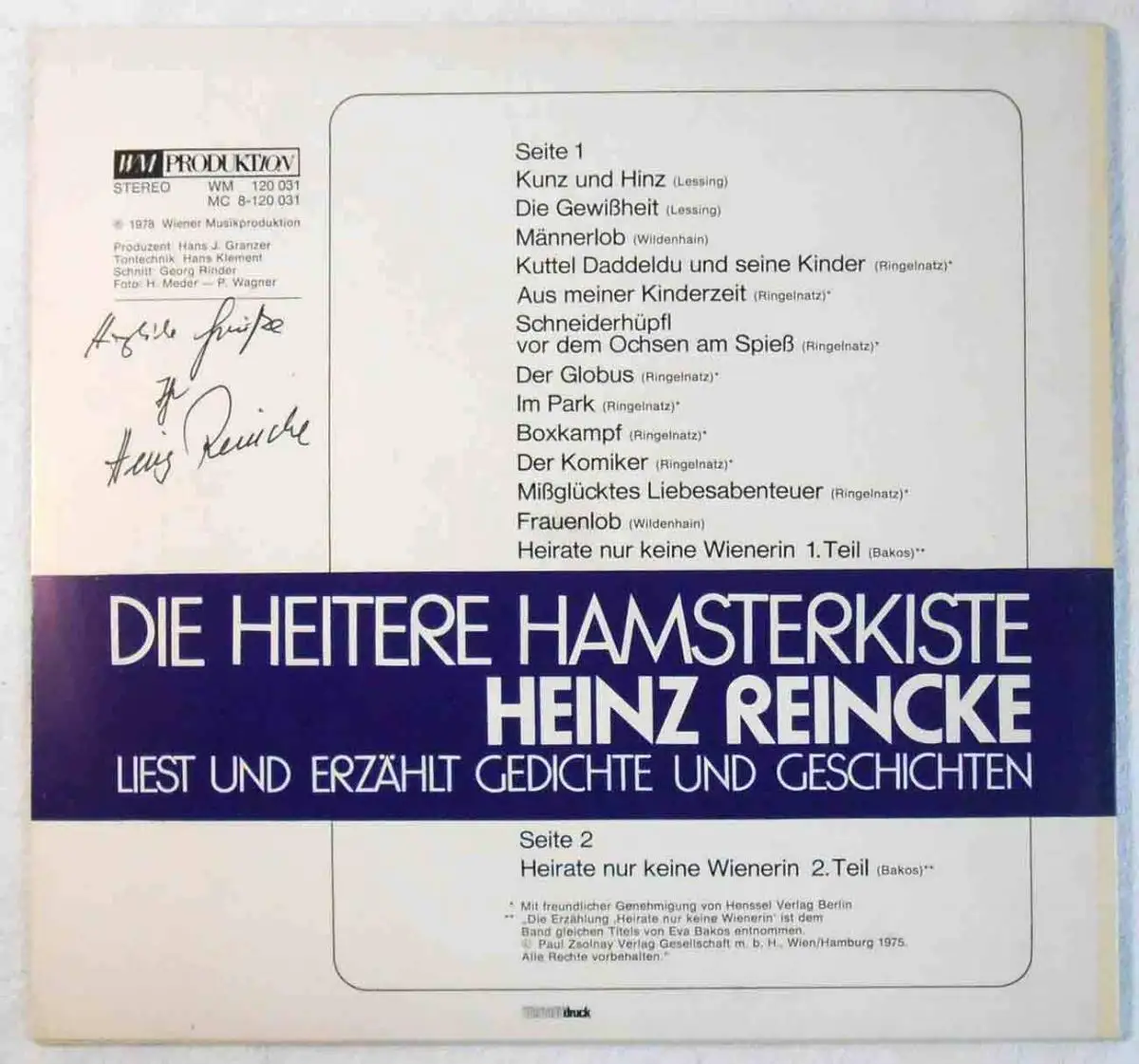 Seltenes Originalalbum, WM Records, 1978Heinz Reincke liest und erzählt Gedichte und Geschichten Optische Bewertung (R/C): m-/m-