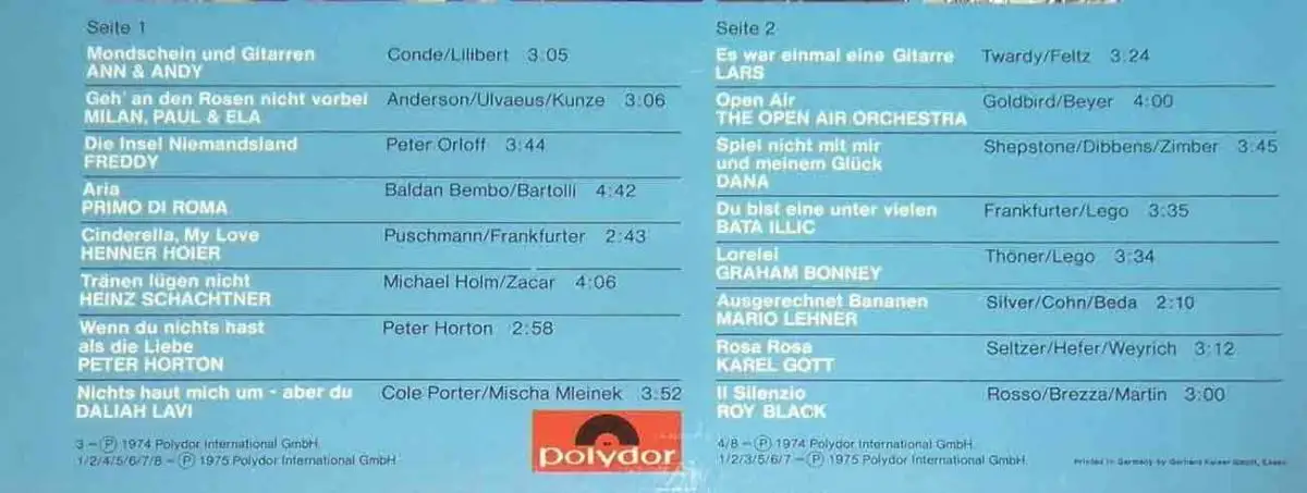 mit Freddy Quinn, Ann & Andy, Lars, Milan Paul & Ela, Henner Hoier, Primo Di Roma, Peter Horton, Daliah Lavi, Heinz Schachtner, Dana, Open Air Orchestra, Mario Lehner, Bata Illic, Graham Bonney, Roy Black, Karel Gott