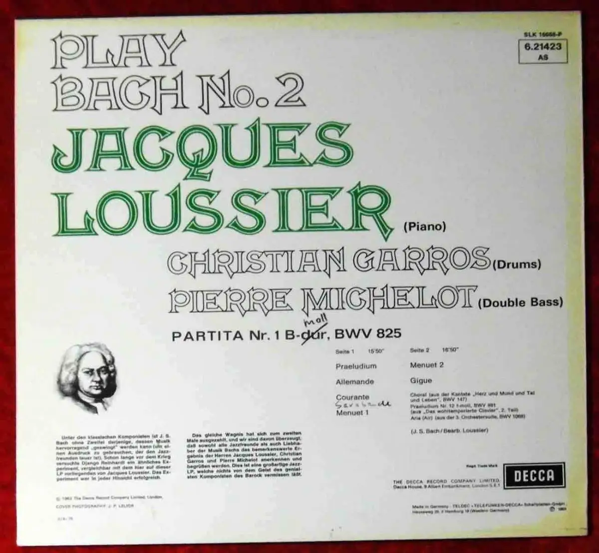 LP Jacques Loussier: Play Bach No. 2 (Decca 621423 AS) D