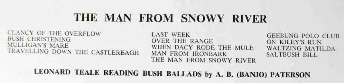 Seltenes Originalalbum aus Australien, CBS Records, Australian Poetry by Leonard Teale (Reading Bush Ballads by A.B. (Banjo) Paterson); Mono Recording