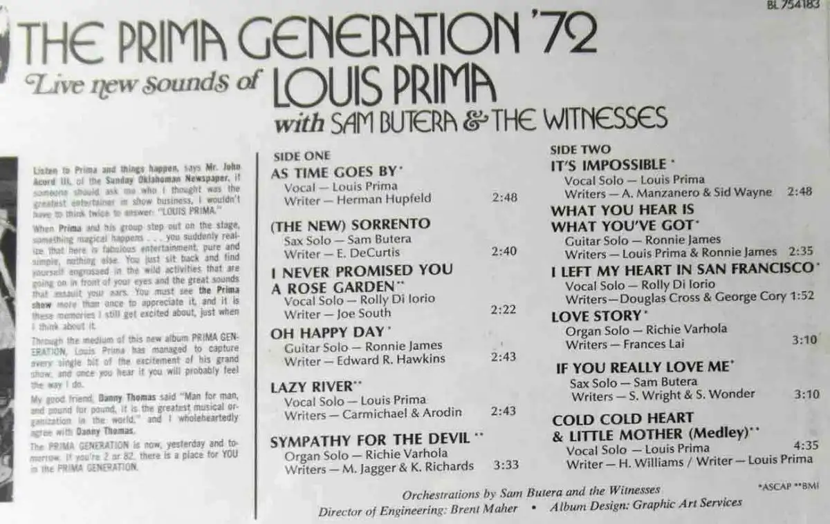 LP Louis Prima & Sam Butera & Witnesses: The Prima Generation ´72 (Brunswick) US