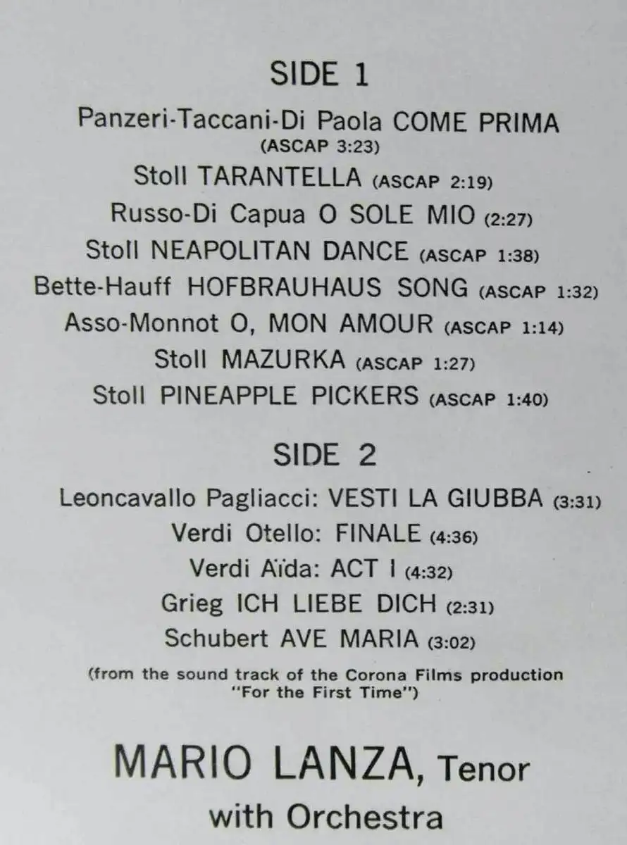 LP Mario Lanza: For The First Time (RCA LM-2338-C) D 1959