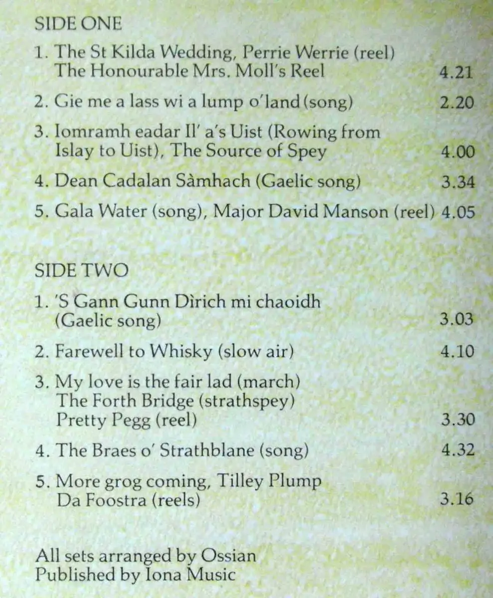 LP Ossian. St. Kilda Wedding (Iona 001) Scotland 1978