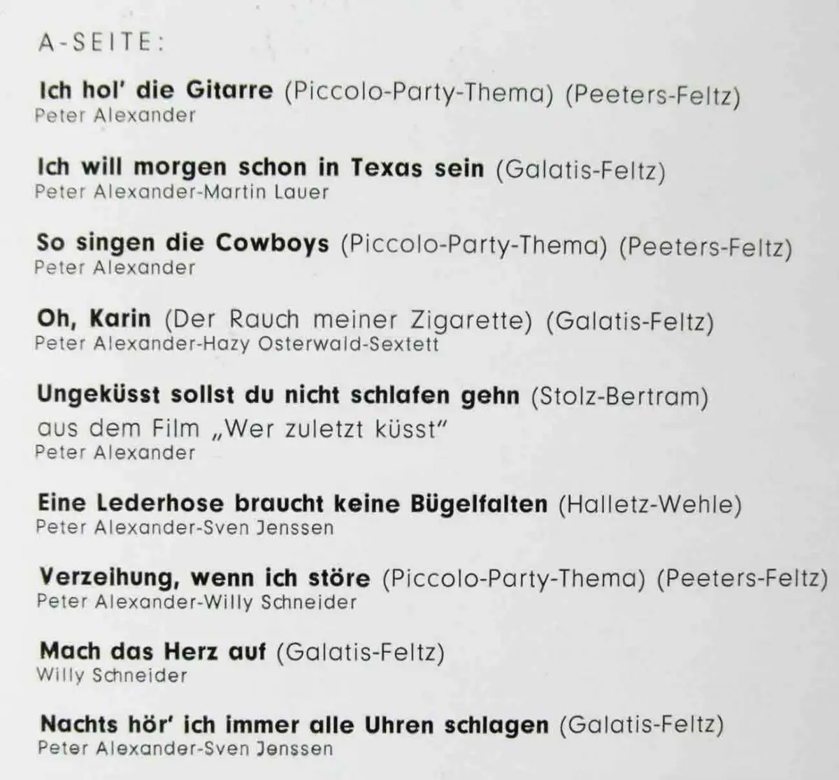 LP Peter Alexander: Piccolo Party (Polydor HiFi 46 782) D 1963