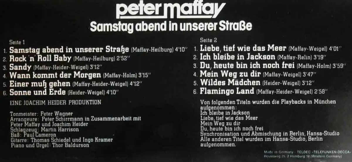 LP Peter Maffay: Samstagabend in unserer Straße (Telefunken SLE 14 782-P) D 1974
