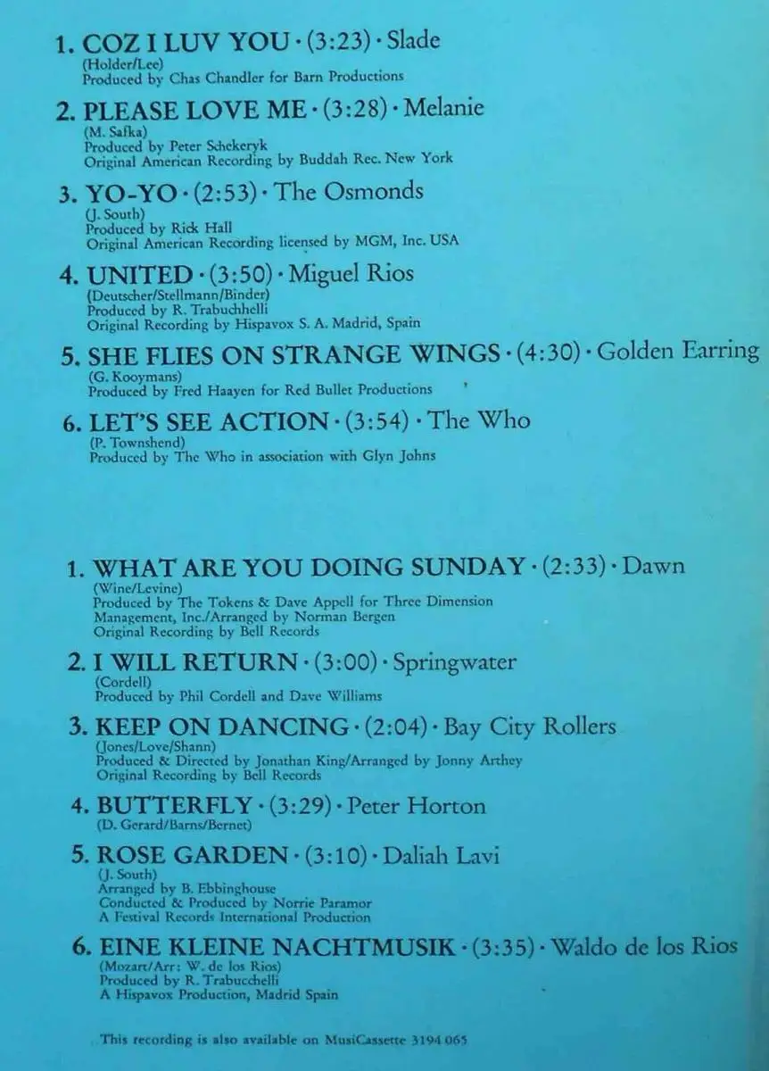 mit Daliah Lavi, Slade, Osmonds, Melanie, Miguel Rios, Golden Earring, Who, Dawn, Springwater, Bay City Rollers, Peter Horton, Waldo de los Rios