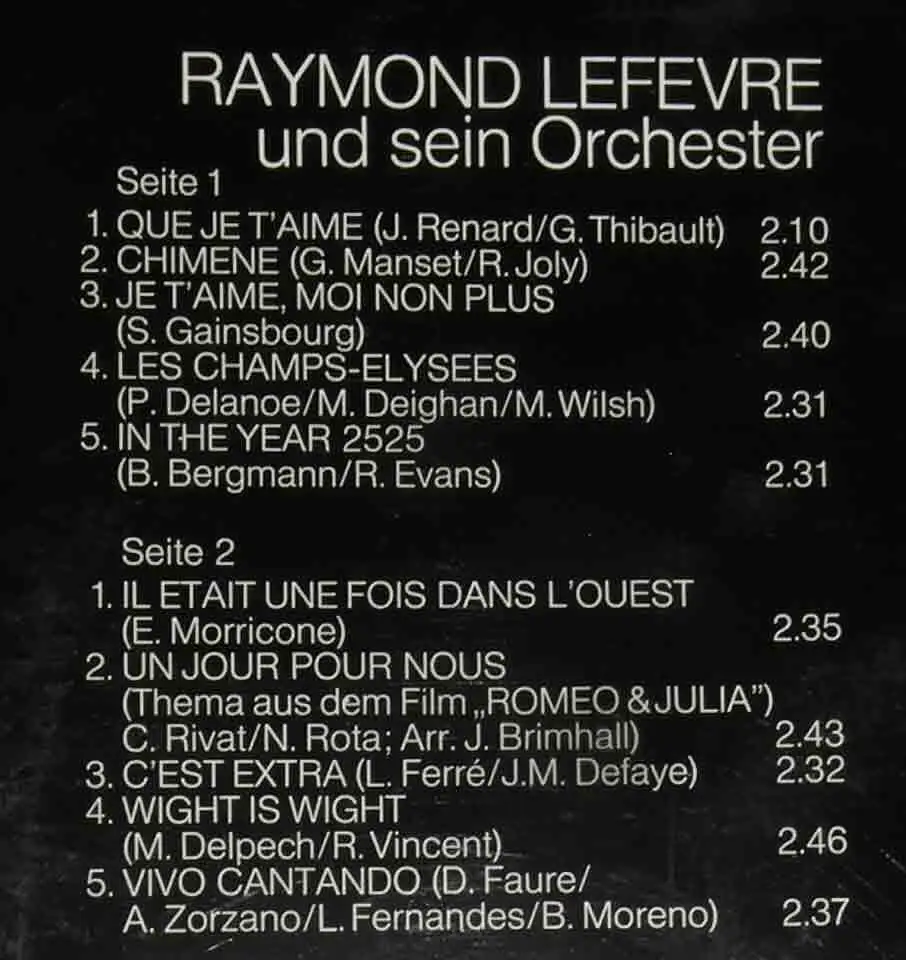 LP Raymond Lefevre: Hits á la Francaise (Riviera RLP 16.006) D 1970
