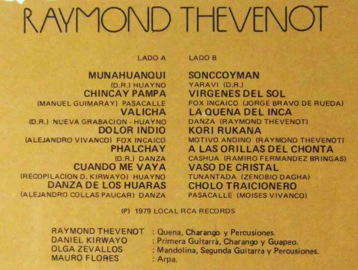 LP Raymond Thevenot: La Quena Del Inka (RCA XRPL-1-028) Peru 1979