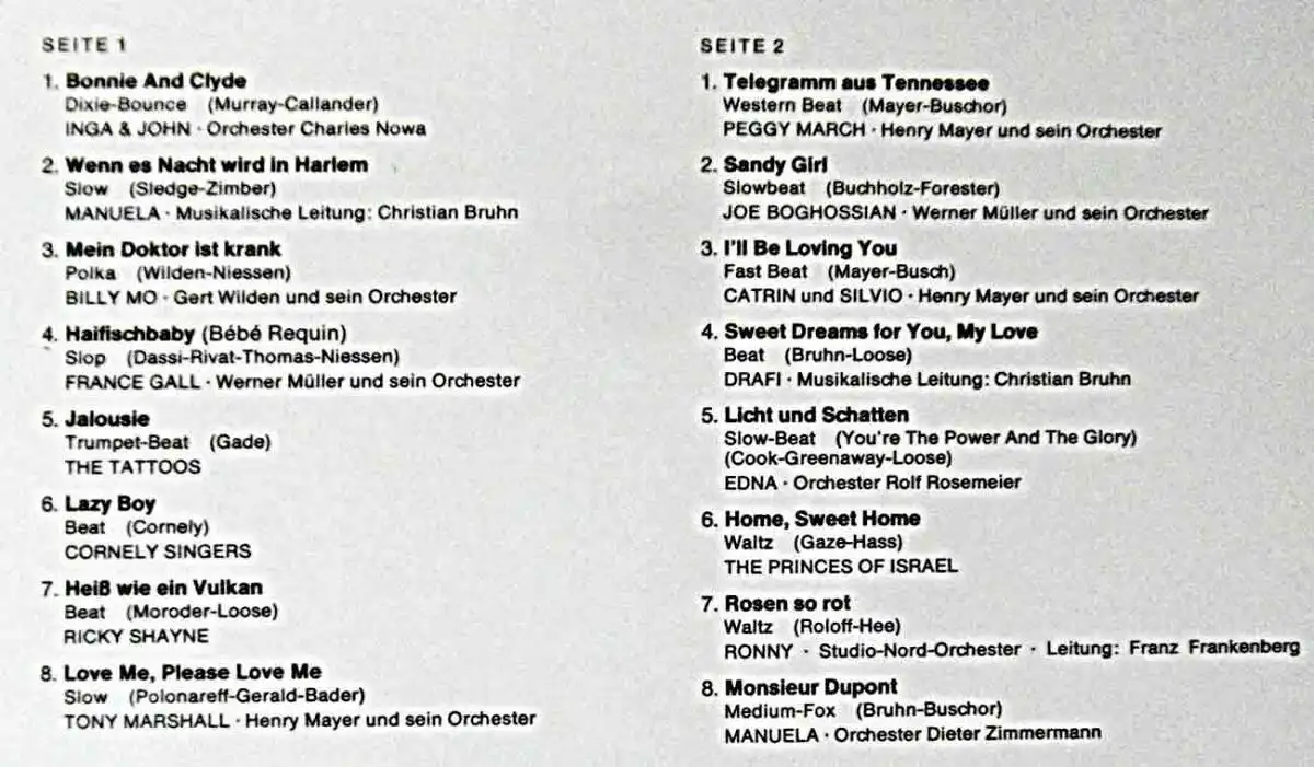 mit Inga & John (Inga Rumpf), Manuela, France Gall, Billy Mo, Tattoos, Cornely Singers, Ricky Shayne, Tony Marshall, Joe Boghossian, Drafi Deutscher, Caterina Valente & Silvio Francesco, Edna, Princess of Israel, Ronny