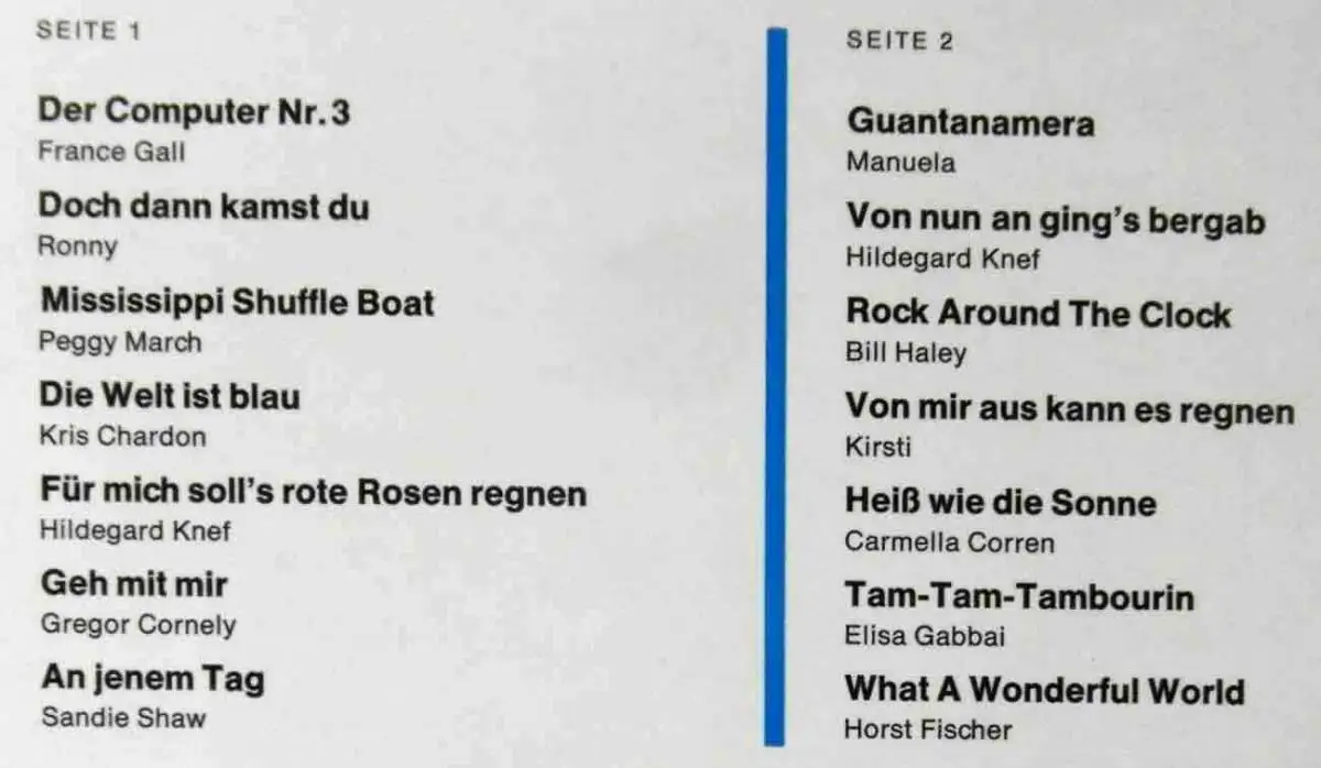 Originalalbum, Decca Deutscher Schallplattenclub, 1968, mit France Gall, Peggy March, Ronny, Kris Chardon, Hildegard Knef, Sandie Shaw, Gregor Cornely, Manuela, Bill Haley, Kirsti, Carmela Corren, Elisa Gabbai, Horst Fischer